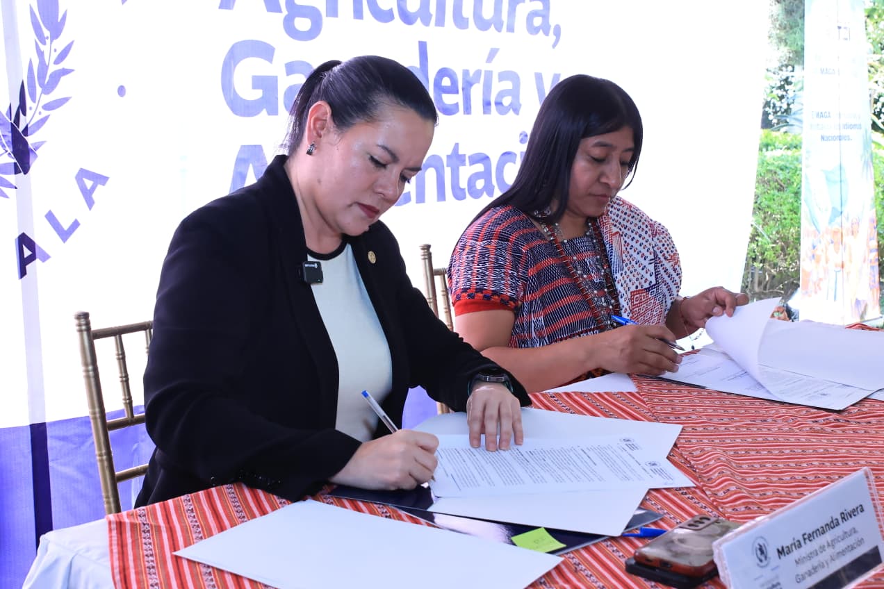 La firma estuvo a cargo de la ministra de Agricultura, María Fernanda Rivera Dávila, y la comisionada coordinadora de CODISRA, Ana Francisca Pérez Conguache, quienes reafirmaron el compromiso del Gobierno con la construcción de una Guatemala multicultural, multilingüe e incluyente.