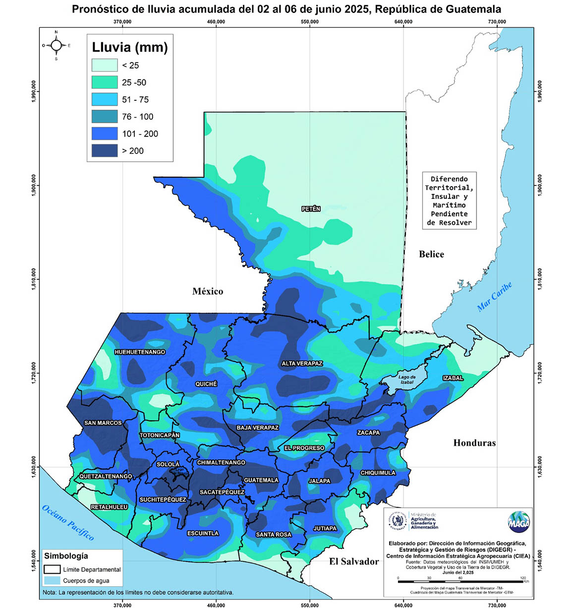 Durante la semana comprendida entre el 2 y el 6 de junio de 2025, se esperan lluvias en la mayor parte del país, por lo cual se realiza el monitoreo ...