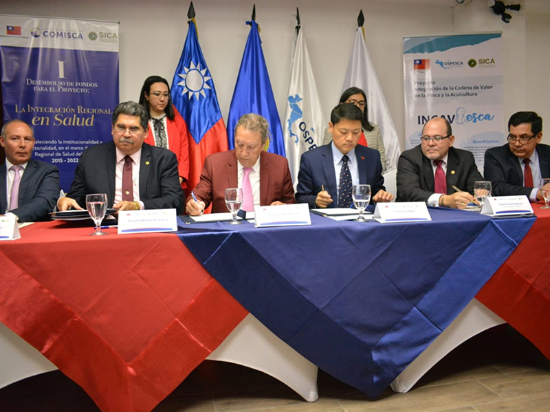 Autoridades de la Dirección de Normatividad de la Pesca y Acuicultura del Ministerio de Agricultura, participaron en el acto del primer desembolso qu...