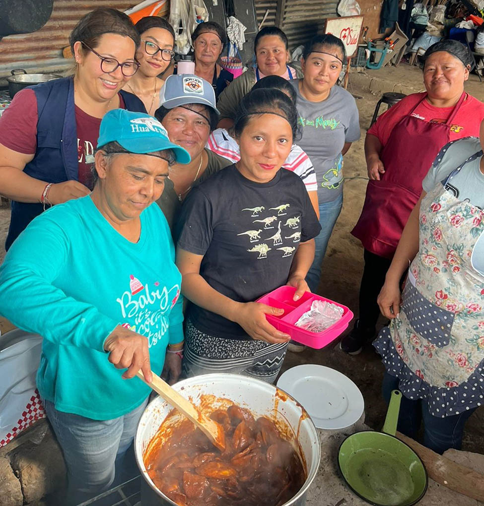 La actividad permitió que las integrantes del Centro de Aprendizaje para el Desarrollo Rural (CADER), de la aldea Cañas Viejas, aprendieran la elaboración técnica de mole de plátano.