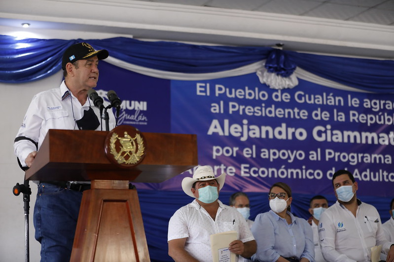 Gualán, Zacapa, 4 de febrero.- El presidente Alejandro Giammattei, de gira de trabajo por este municipio de Zacapa, reconoció hoy los aportes al pa...