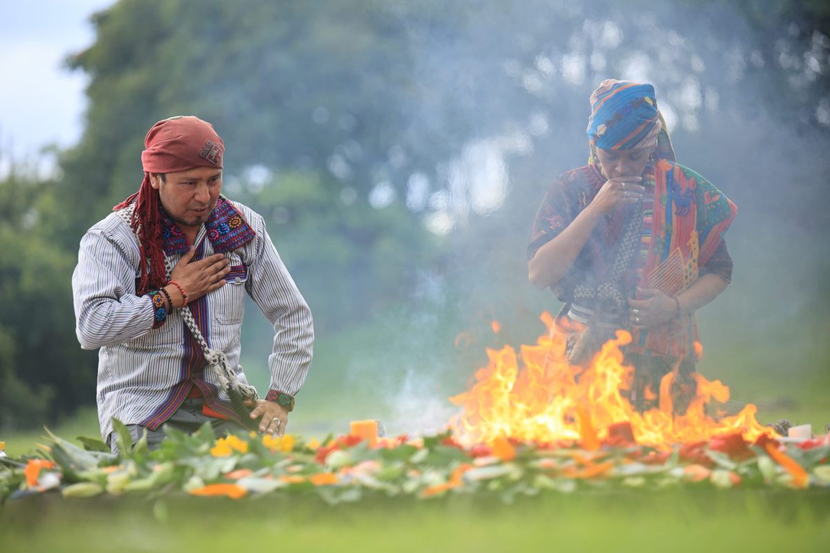La ceremonia fue dirigida por el guía espiritual Nelson Tuyuc, de Comalapa, Chimaltenango, acompañado de Adelaida Riquiac, de Chichicastenango.