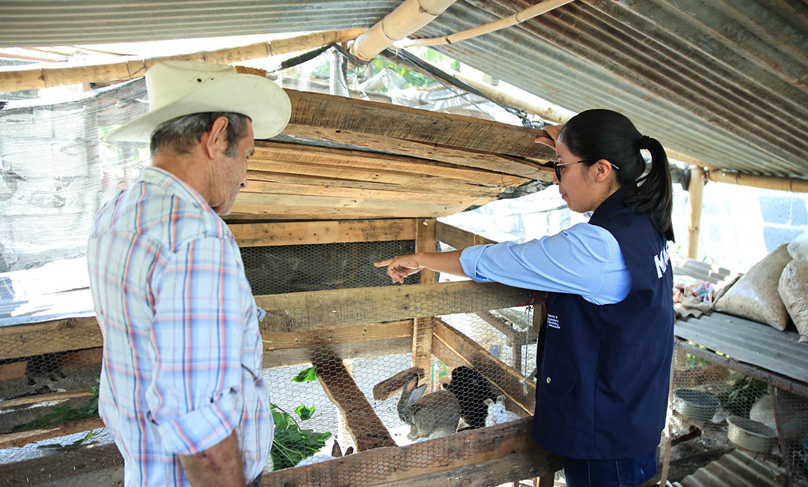 Profesionales de campo de la Dirección de Apoyo a la Producción Comunitaria de Alimentos (DAPCA), promueven la crianza de gallinas la cual facilita el acceso a huevos frescos, mientras que los conejos, cabras o peces, aportan carne rica en proteínas, nutrientes esenciales para el crecimiento y desarrollo, especialmente de niñas y niños.