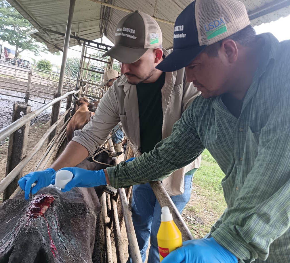 Estas labores incluyen la revisión diaria de ganado bovino y equino para detectar de forma temprana heridas susceptibles a infestación por la mosca Cochliomyia hominivorax.
