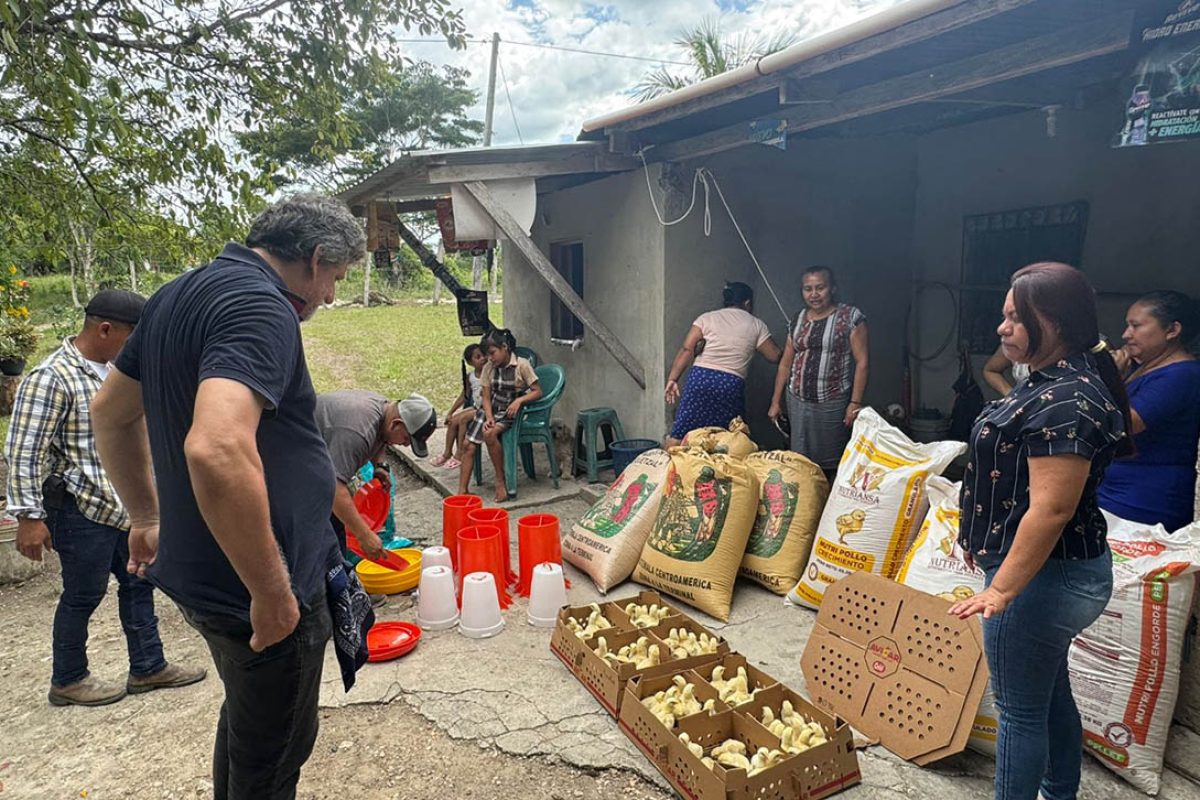 En el caserío Salpet, Melchor de Mencos, Petén, un grupo de familias dio un paso importante hacia el fortalecimiento de su economía familiar y la seguridad alimentaria, al recibir un proyecto de pollos de engorde.