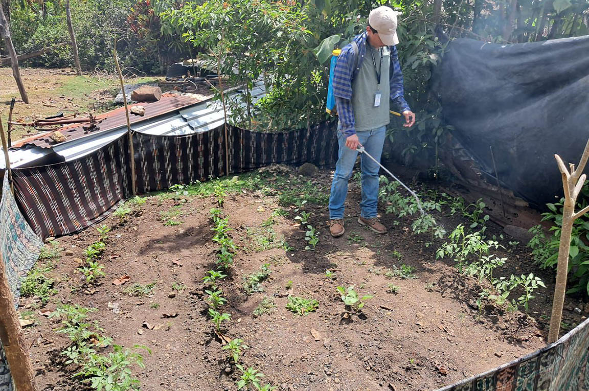 Familias de las comunidades de La Guadalupe, Las Rosas y Finca África, ubicadas en el municipio de El Chal, Petén, recibieron asistencia técnica en los 56 huertos familiares, relativa a la aplicación de fertilización foliar. Esta intervención tuvo como objetivo reducir la incidencia de plagas que puedan afectar la producción.