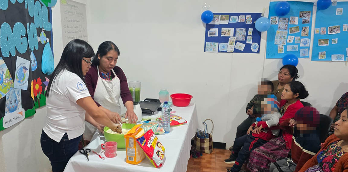 Durante el encuentro, se realizó una práctica de transformación de alimentos donde las familias aprendieron la receta de panqueques de espinaca, reforzando la importancia de utilizar agua segura en la preparación de platillos nutritivos que mejoren el bienestar físico y el desarrollo de la niñez.
