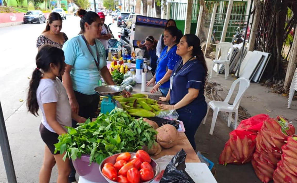 La feria también incluyó la venta de platillos tradicionales como chuchitos y empanadas, integrando la gastronomía local con la oferta de productos básicos.