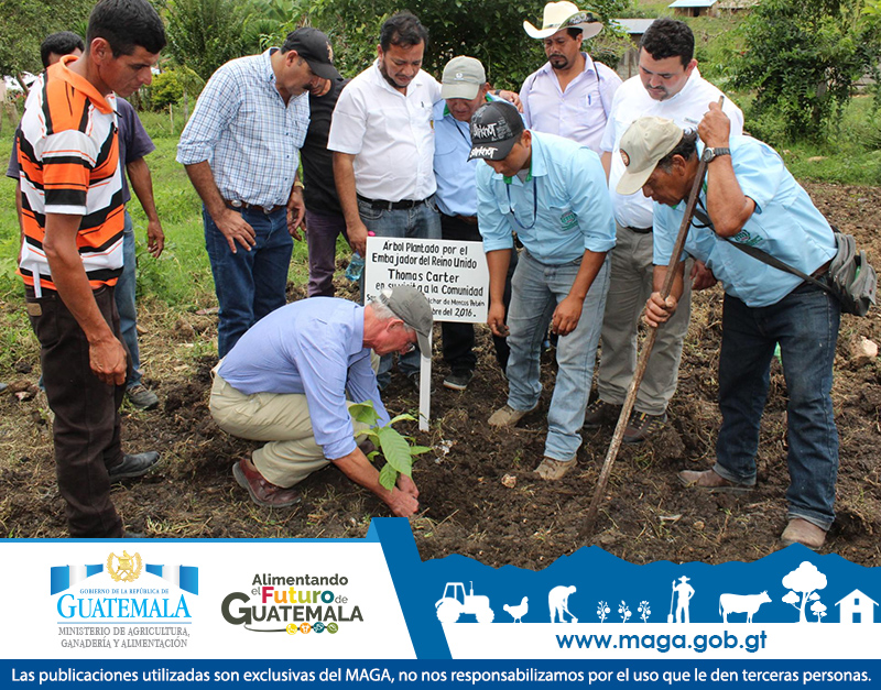 Autoridades del Ministerio de Agricultura, Ganadería y Alimentación, MAGA y el embajador de Reino Unido en Guatemala, Thomas Carter, realizaron una gira de trabajo en comunidades de la zona de adyacencia entre Guatemala y Belice. El recorrido abarcó San José las Flores, jurisdicción de Melchor de Mencos y San Marcos, ubicada entre el municipio de Dolores y Poptún, Petén. La supervis ión busca fortalecer los proyectos impulsados con el MAGA y la Coordinadora de Asociaciones Campesinas Agropecuarias de Petén, COACAP.