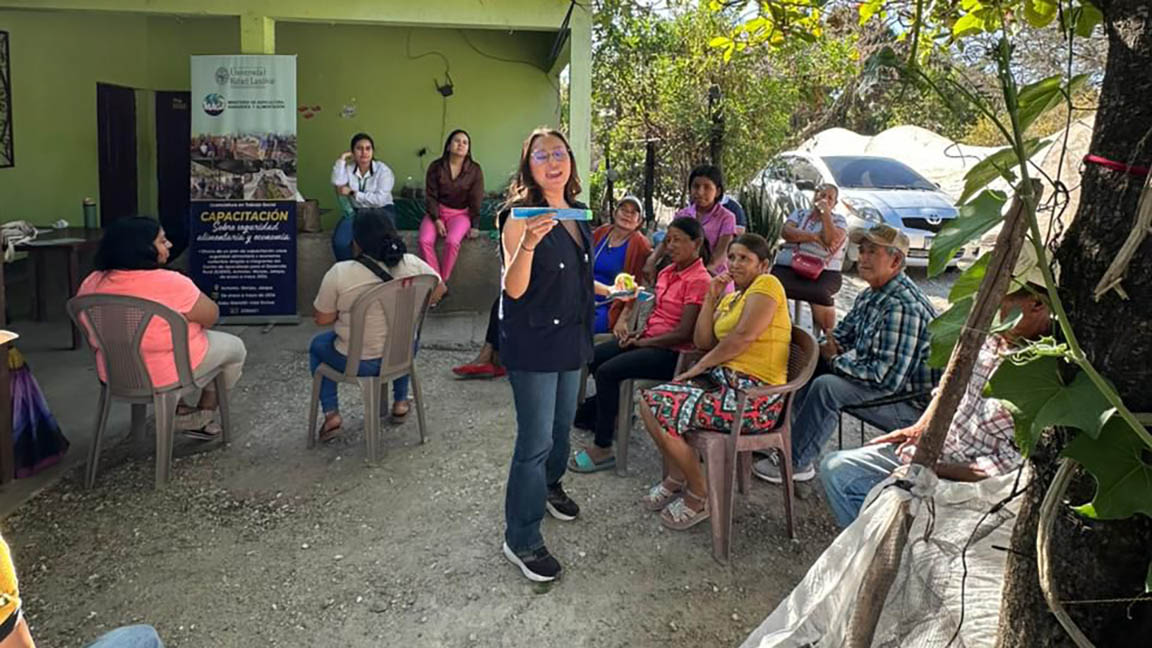 Durante la actividad, la nutricionista del componente de Agricultura Familiar Sensible a la Nutrición y Fomento de Huertos explicó cómo los huertos familiares contribuyen a garantizar el acceso y la disponibilidad de alimentos frescos, saludables y de alto valor nutritivo.