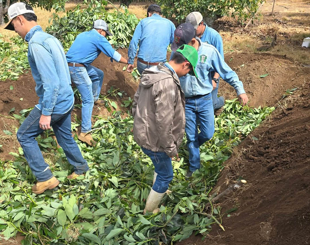 Por su parte, los del quinto semestre ejecutaron una poda de sanidad en el cultivo de aguacate (Persea americana) variedad Hass, con el fin de controlar plagas como el barrenador de ramas, la palomilla barrenadora y el agallador del follaje.