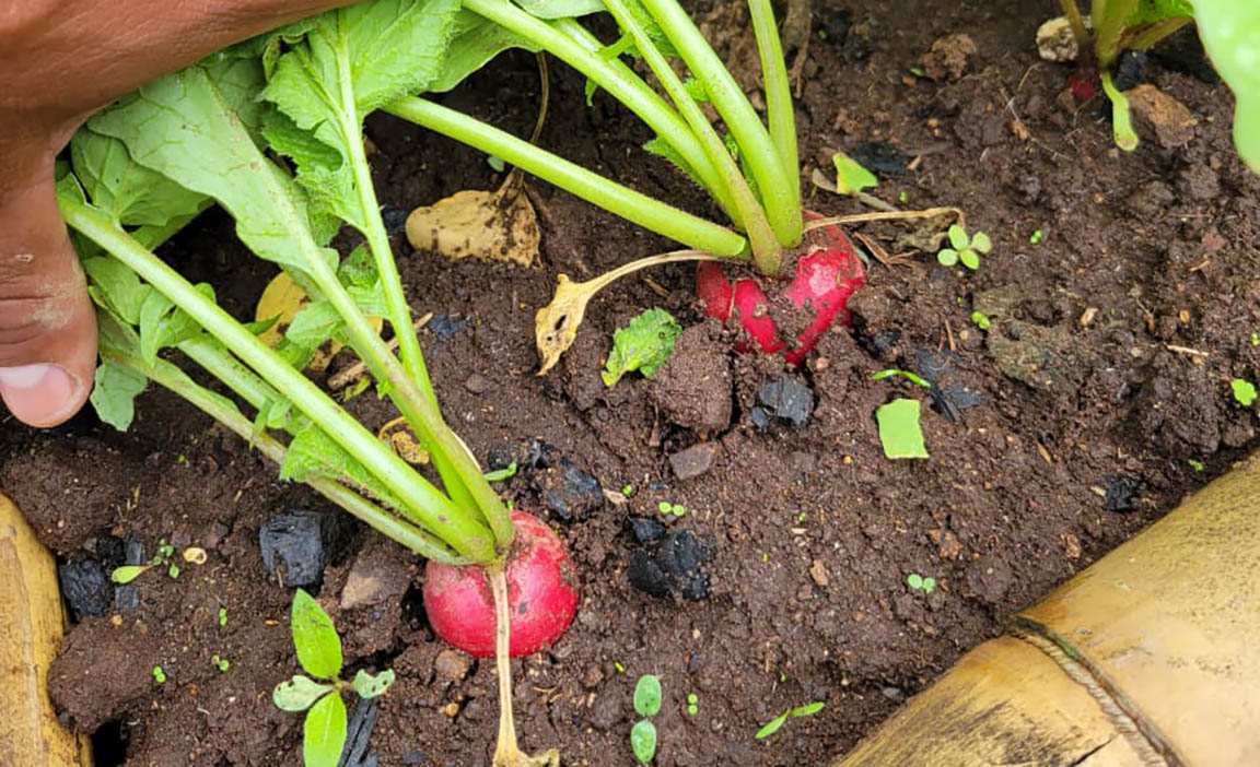 Los integrantes del Centro de Aprendizaje para el Desarrollo Rural (CADER), del caserío La Ruda, aldea Chiramay, municipio de Quezaltepeque, Chiquimula, recogieron la cosecha del ensayo de cosecha de siembra de rábano, proyecto establecido para fortalecer la disponibilidad de alimentos y la economía local.