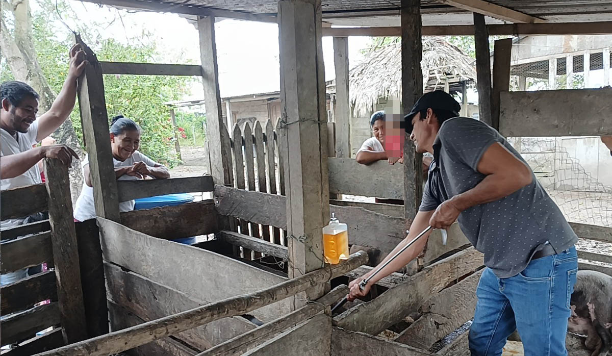 Una jornada de aplicación de vitaminas y desparasitantes, dirigida a cerdos de traspatio, se realizó en la comunidad de La Unión, Santa Ana, departamento de Petén.