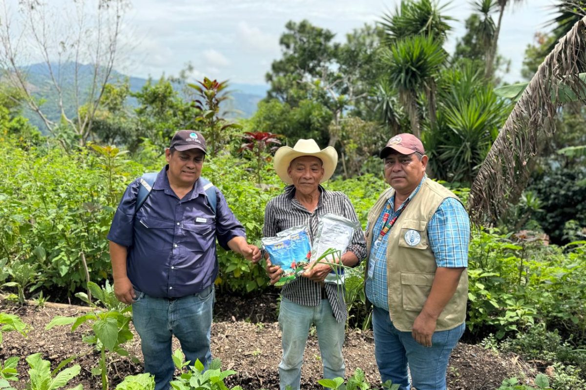 Durante una reciente visita, el personal de la Organización de las Naciones Unidas para la Alimentación y la Agricultura (FAO) entregó fungicidas y fertilizante orgánico, insumos que las familias podrán utilizar para proteger y nutrir sus cultivos.