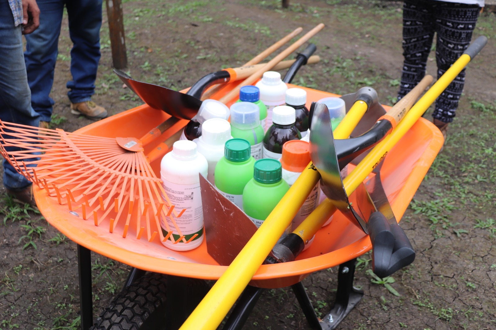 De igual forma, se les dotó de herramientas como: carretas, palas, piochas, azadones, machetes, limas, rastrillos, fertilizantes, insecticidas y fungicidas.