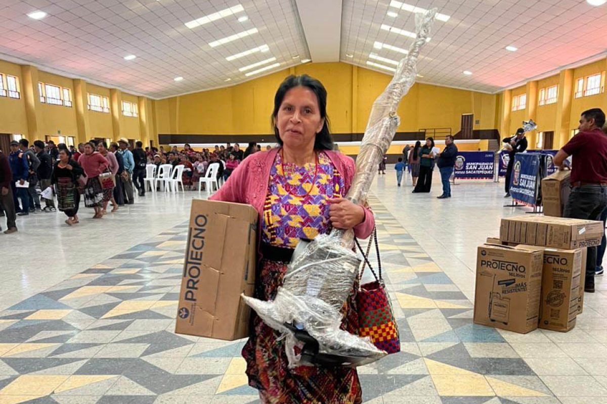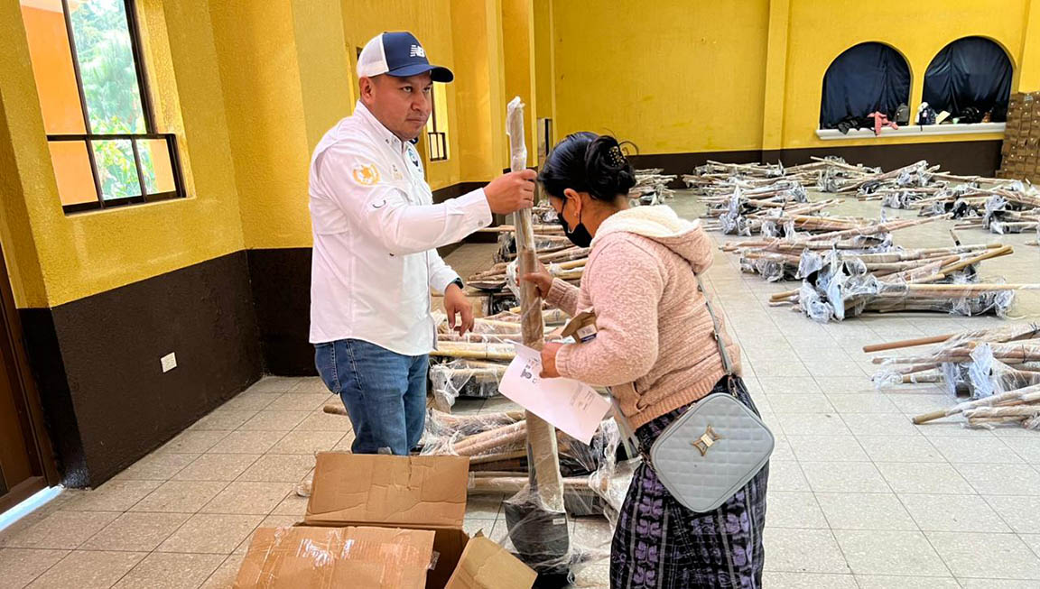 Cada kit incluye semillas de hortalizas como acelga, cilantro, cebolla blanca, güicoy y pepino; semillas nativas de amaranto y chipilín; además de herramientas agrícolas como azadón, machete, pala y piocha, así como una bomba de aspersión y abono orgánico.