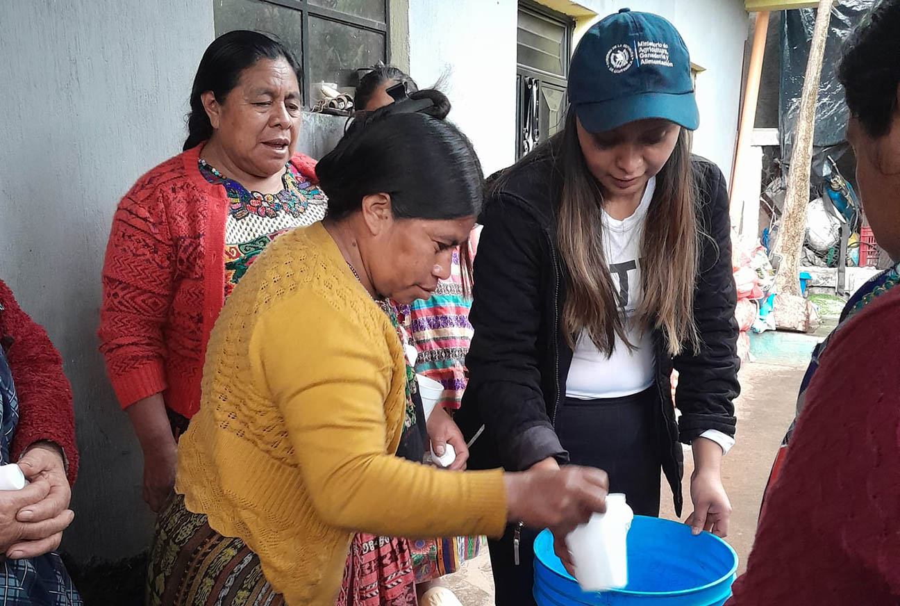 En la aldea Buena Vista, San Juan Ostuncalco, diez familias recibieron asistencia técnica para la elaboración de insumos de limpieza para el hogar. Esta acción tiene como propósito de fomentar el ahorro en la economía familiar, permitiendo que las beneficiarias produzcan sus propios productos de higiene de manera económica y efectiva.