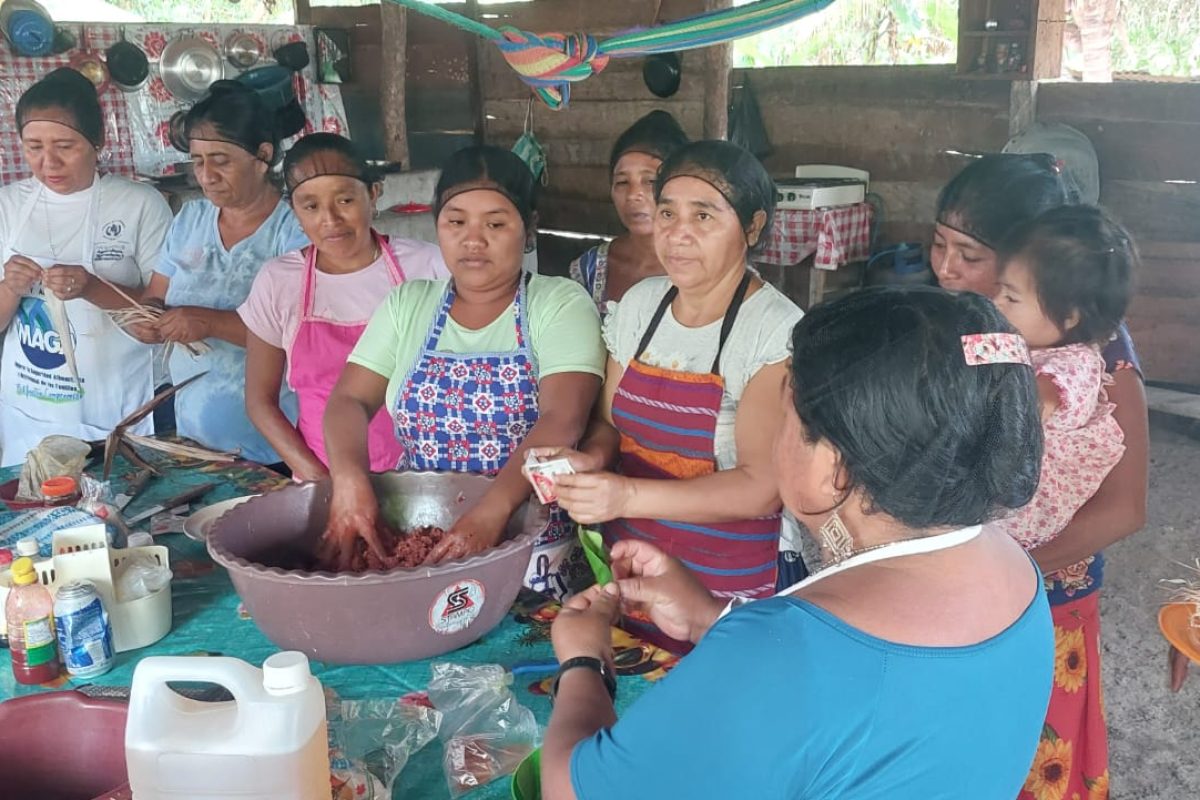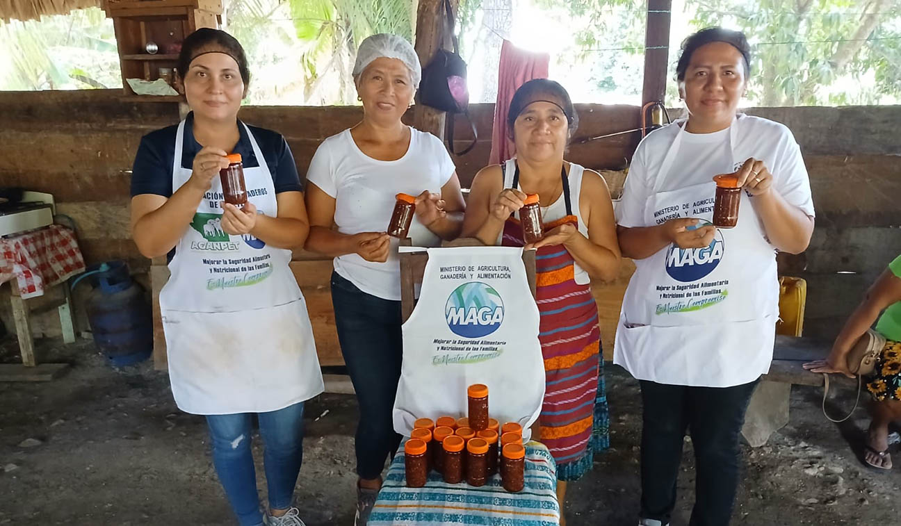 En la comunidad Cruce Dos Aguadas, municipio de San Andrés, Petén, mujeres del Centro de Aprendizaje para el Desarrollo Rural (CADER), participaron en una capacitación enfocada en la elaboración de productos alimenticios, como mermelada de piña y zanahoria, escabeche de chile jalapeño, salsa de chile cobanero y longaniza petenera a base de carne de cerdo.