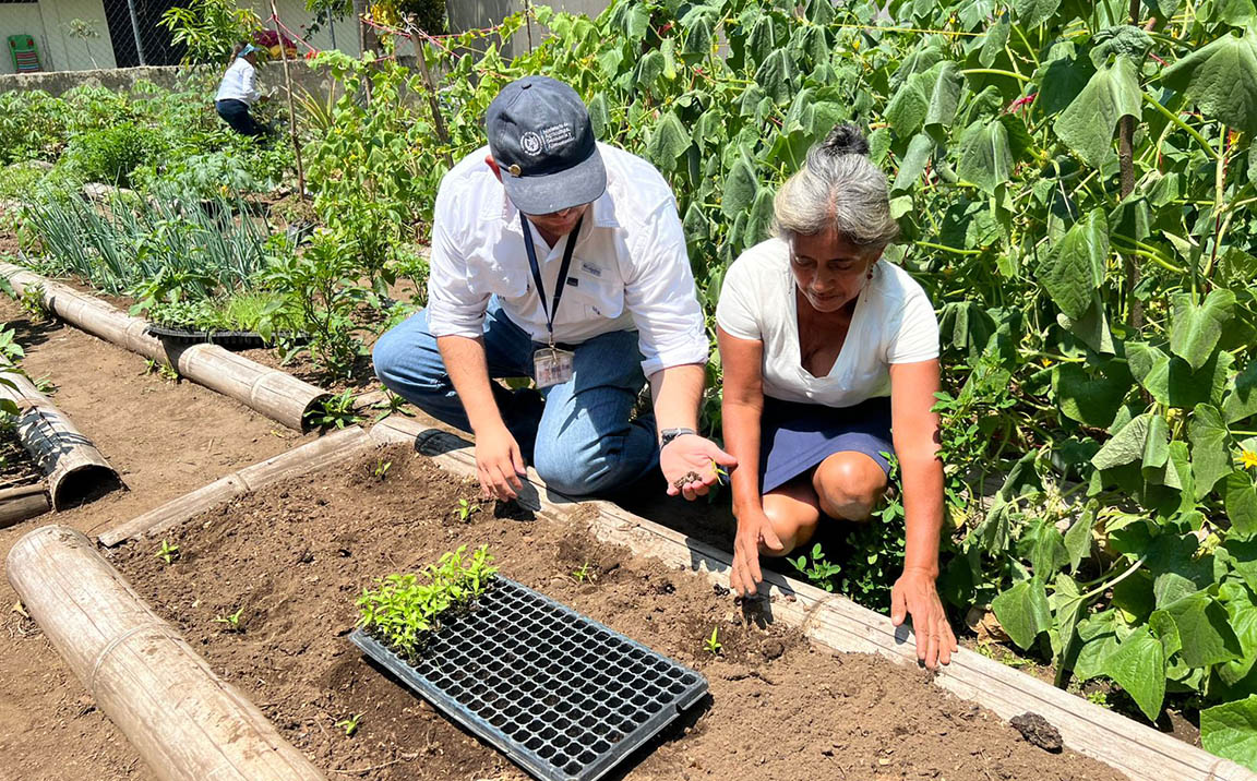 Durante una visita de seguimiento y monitoreo, los técnicos acompañaron a las agricultoras para verificar el avance de la siembra y fortalecer sus conocimientos en el manejo del huerto.