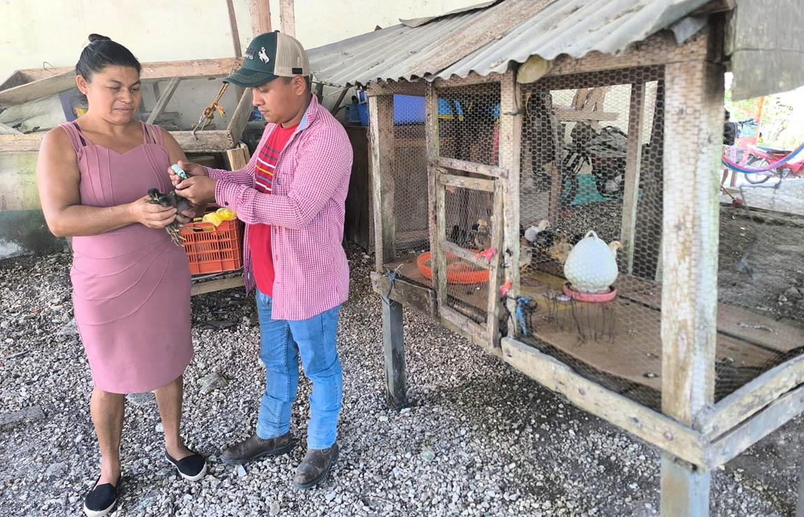 Se dio seguimiento a la vacunación de una nueva camada de 100 pollos de engorde, así como de 50 pollitos de patio, con el objetivo de prevenir que enfermedades de origen viral puedan afectar la producción en el caserío Tikalito, municipio de Melchor de Mencos, Petén.