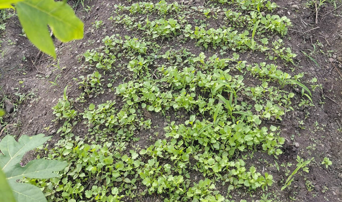 Durante la visita de campo, los técnicos realizaron diagnósticos de los cultivos y ofrecieron recomendaciones específicas. Por ejemplo, en el cultivo de cilantro, se orientó acerca del control de malezas y la densidad adecuada de siembra, mientras que en el de repollo se brindaron estrategias para el manejo y control de plagas.