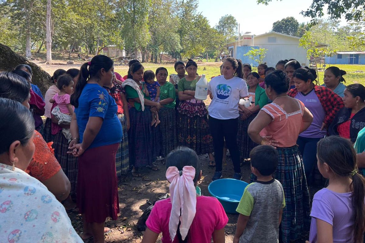 Durante la actividad, la extensionista, Sayra Mazariegos, de Hogar Rural, de la Agencia Municipal de Extensión Rural (AMER) del Ministerio de Agricultura, Ganadería y Alimentación (MAGA), brindó información acerca de los riesgos asociados al consumo de agua no tratada, así como las enfermedades que pueden prevenirse mediante prácticas adecuadas de desinfección.