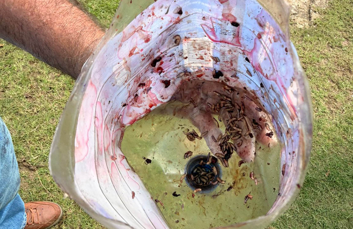 Durante la jornada se impartió capacitación al propietario y a los trabajadores de la finca acerca del ciclo biológico del Gusano Barrenador, la importancia del tratamiento oportuno de heridas, el uso correcto de productos veterinarios y el manejo adecuado de las larvas. Todo ello con el objetivo de fortalecer la prevención y control de esta enfermedad en la zona (EJ/ea).