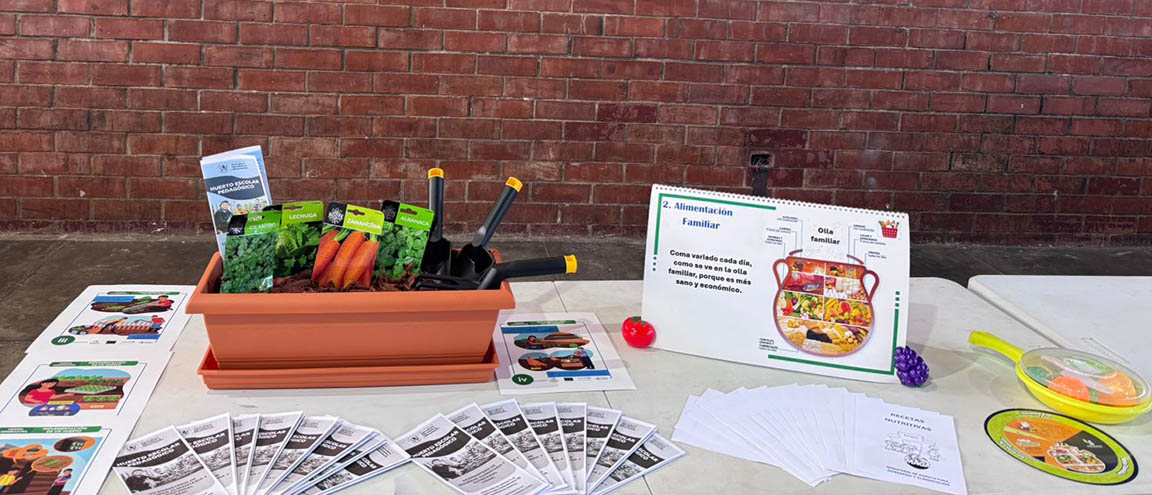 Como parte de la capacitación, se instaló un espacio informativo coordinado con la Dirección de Apoyo a la Producción Comunitaria de Alimentos (DAPCA), donde se compartieron ejemplos prácticos y materiales educativos relativos a la alimentación balanceada y producción de alimentos a pequeña escala.