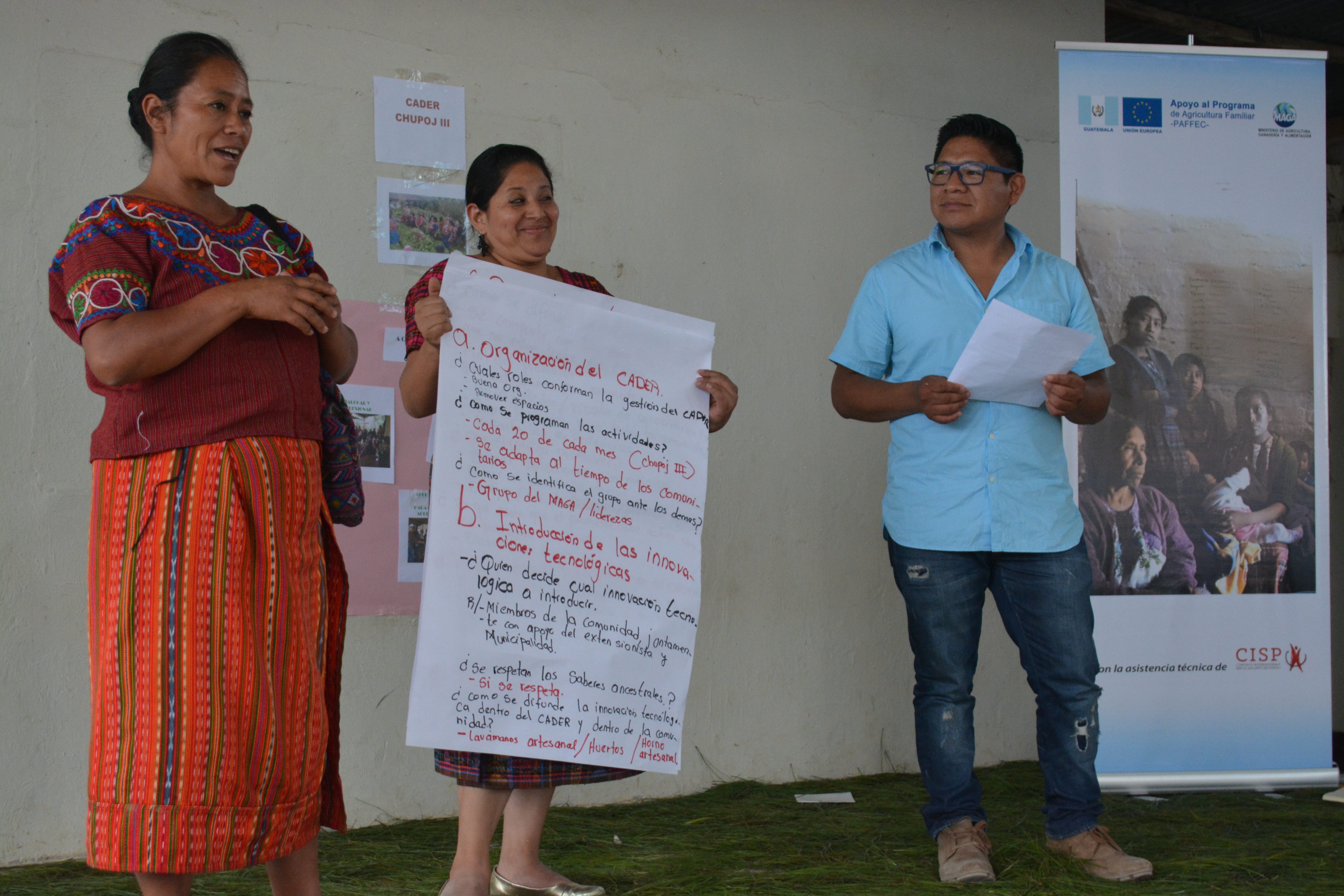 Sergio Chacaj, nació en la comunidad de Chupol III y luego de formarse como ingeniero agrónomo y su experiencia de vida, decidió regresar a su pueblo, para compartir las enseñanzas aprendidas en las aulas universitarias. “la actividad de hoy es un proceso que se viene generando dentro de la Gestión del Conocimiento, con personas que participan activamente en el CADER y cuentan con el apoyo de las autoridades comunitarias. Se trabajó con palabras generadoras, que sirvieron de base para desarrollar la actividad y así hacer una radiografía de lo que los comunitarios entienden sobre el CADER y su rol en la comunidad”.