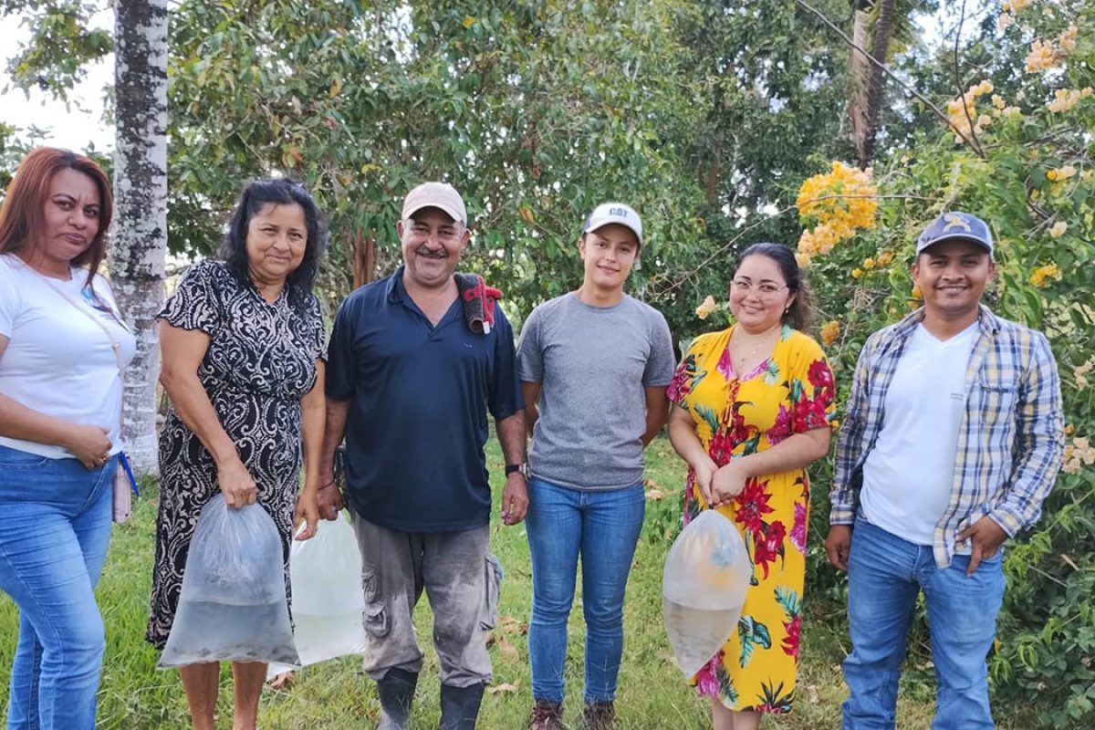 Como parte de las acciones para fortalecer la seguridad alimentaria y promover el desarrollo productivo en las comunidades rurales, 21 familias de la comunidad Grano de Oro, en el municipio de Melchor de Mencos, fueron beneficiadas con la entrega de 1050 alevines para fortalecer su actividad de acuicultura artesanal.