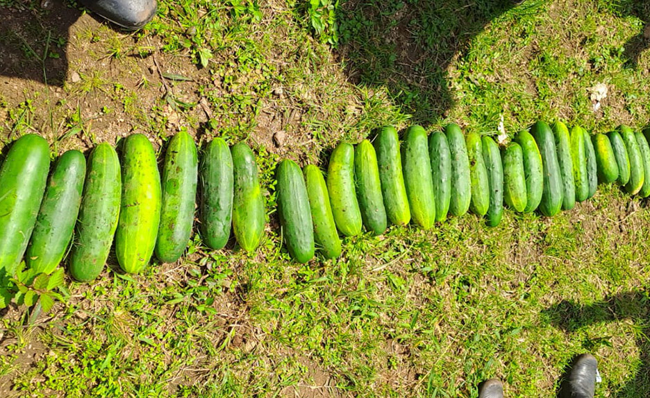 Alumnos recogen su cosecha de pepinos