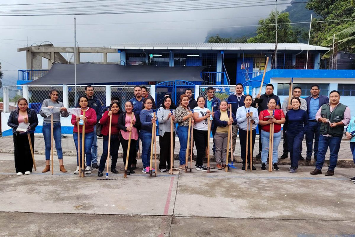 La jornada incluyó la entrega de kits para huertos escolares con fines pedagógicos, que contenían azadón, machete y semillas de hortalizas, para que los docentes implementen huertos en sus escuelas como parte de un proceso educativo práctico.