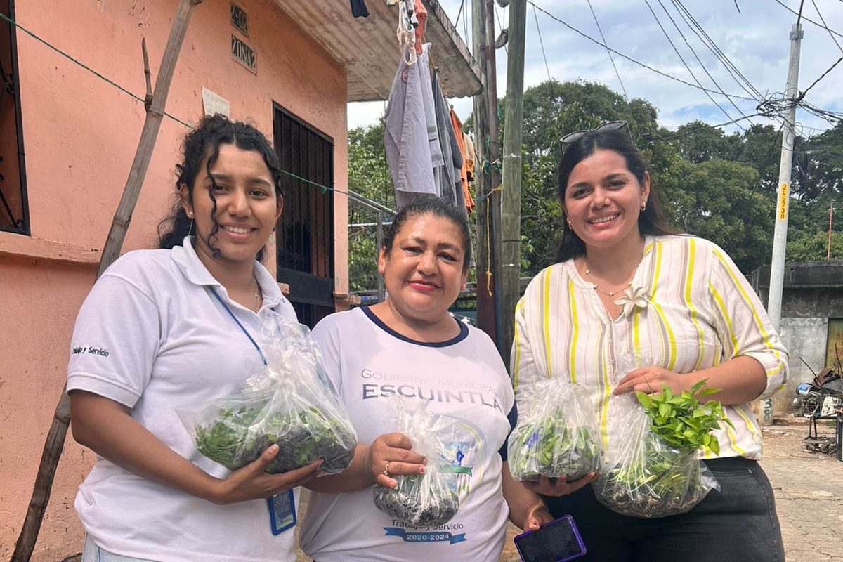 Como un impulso a la producción de alimentos sanos y nutritivos de los hogares guatemaltecos, 500 mujeres participantes del programa municipal “Hogares Saludables” fueron beneficiadas con pilones de variedades con pertinencia cultural y alto valor nutricional, como chipilín, chile jalapeño, acelga, perejil, cilantro, apio y cebolla.