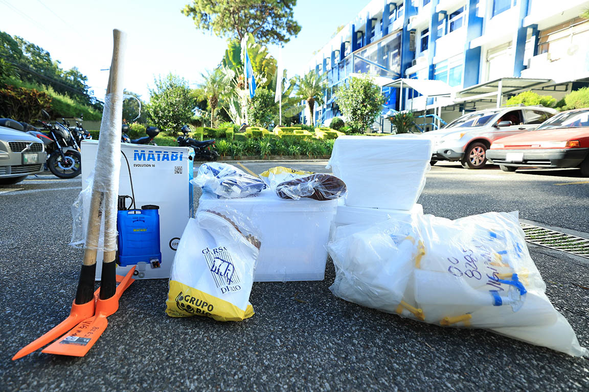 Distintas herramientas e implementos que serán utilizados en las labores de vigilancia fitosanitaria de las musáceas (familias de plantas que incluy...