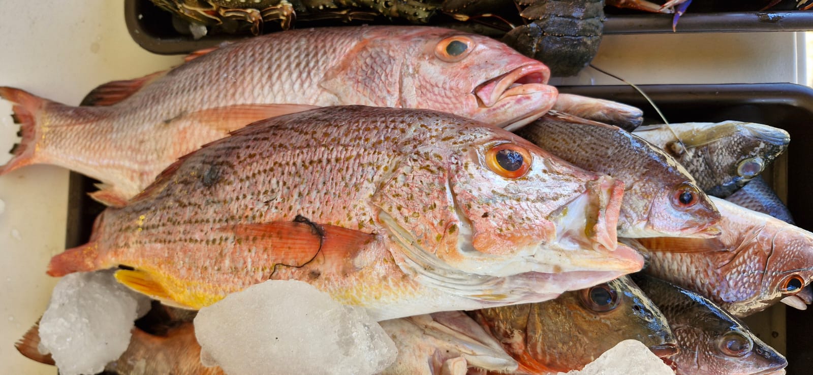 Ventas de pescado de distintos tipos, camarón, langosta, caracoles, entre otros mariscos frescos, se observaron en los espacios donde los comerciantes impulsaron sus productos.