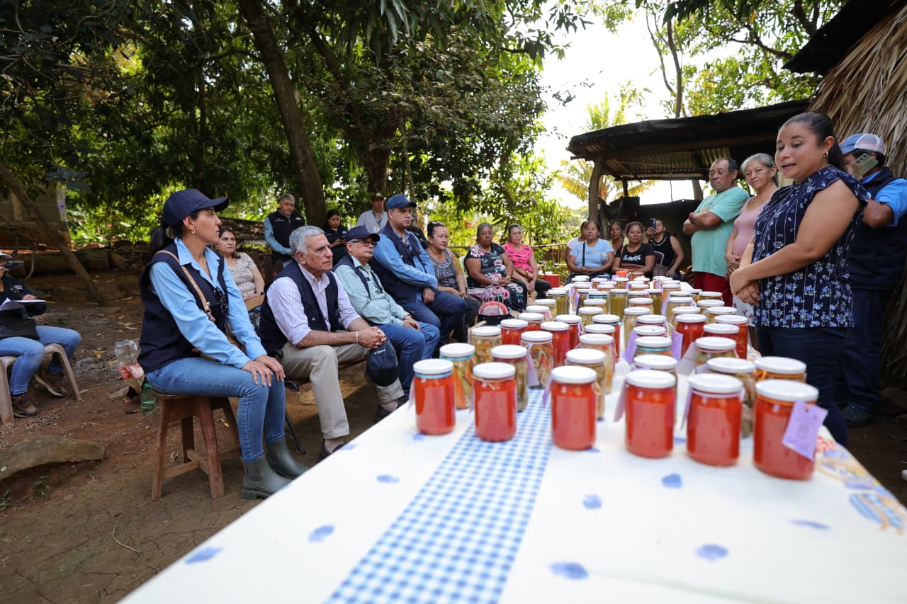 Durante la visita también se conoció la experiencia de un grupo de mujeres emprendedoras de la aldea Santo Domingo, Nancita, en Chiquimulilla, que recibe capacitación en procesos de envasado artesanal con el acompañamiento del programa Hogar Rural. Las participantes elaboran salsas, vinagretas, escabeches, mermeladas y almíbares a partir de frutas locales, contribuyendo a la seguridad alimentaria y a la generación de ingresos.
